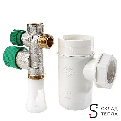 В комплект входит сифон, а у модели 3/4" еще и переходник на 1/2", что делает ее универсальной.
