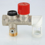 Группа состоит из латунного никелированного корпуса, в котором расположены шаровой кран с затвором из полисульфона, пружинный обратный клапан и предохранительный клапан большой производительности по воде и водяному пару.