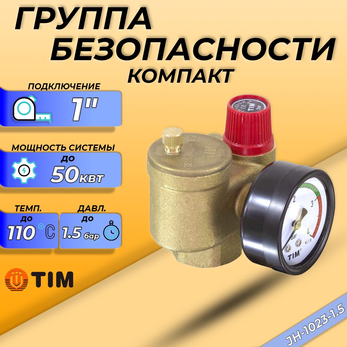 Группа безопасности котла JH1023 на 1.5 бар классической формы представляет собой комплекс приборов, которые обеспечивают безаварийное функционирование системы отопления и контроль давления рабочей жидкости. В целом, JH1023-1.5 производства компании TIM — это три предохранительных элемента смонтированных на одном корпусе и предназначенных для недопущения в системе превышения максимального давления в 1.5 бар.