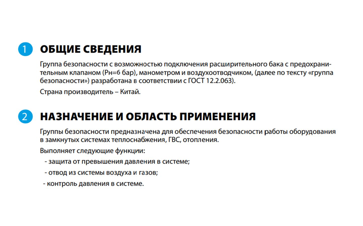 Комплектная группа безопасности предназначена для автономных систем водяного отопления и ГВС