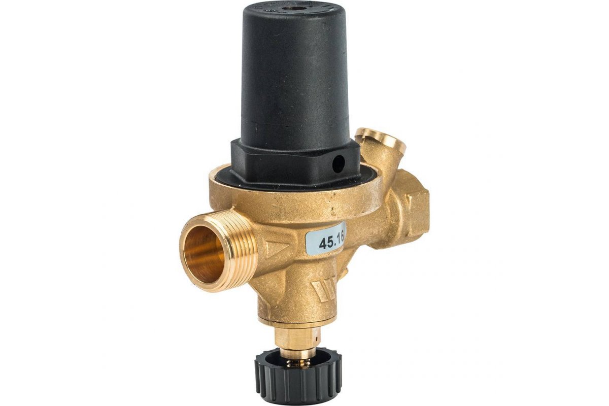 Подпиточный клапан для закрытых систем отопления с встроенным обратным клапаном, ручным запорным клапаном, фильтром грубой очистки (стальная сеточка), винтом развоздушивания. Корпус из латуни. Ударопрочный пластмассовый колпачок. Подключение для манометра 1/4" ВР. Макс. допустимое давление на входе 10 бар. Диапазон регули- рования давления на выходе от 0,3 до 4 бар. Штуцер для шланга на входе.