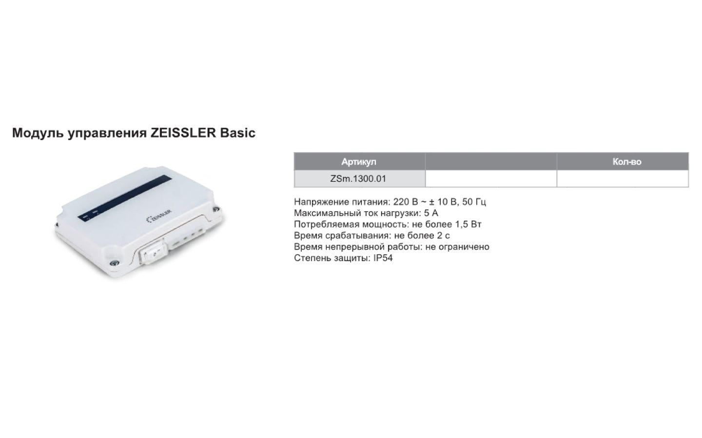 Система контроля протечек Zeissler Basic предназначена для автоматического отключения подачи воды и выдачи звукового оповещения при возникновении протечек воды в системах водоснабжения, отопления и канализации. При попадании воды на датчик блок управления выдаст сигнал на шаровые электроприводы для отключения подачи воды.