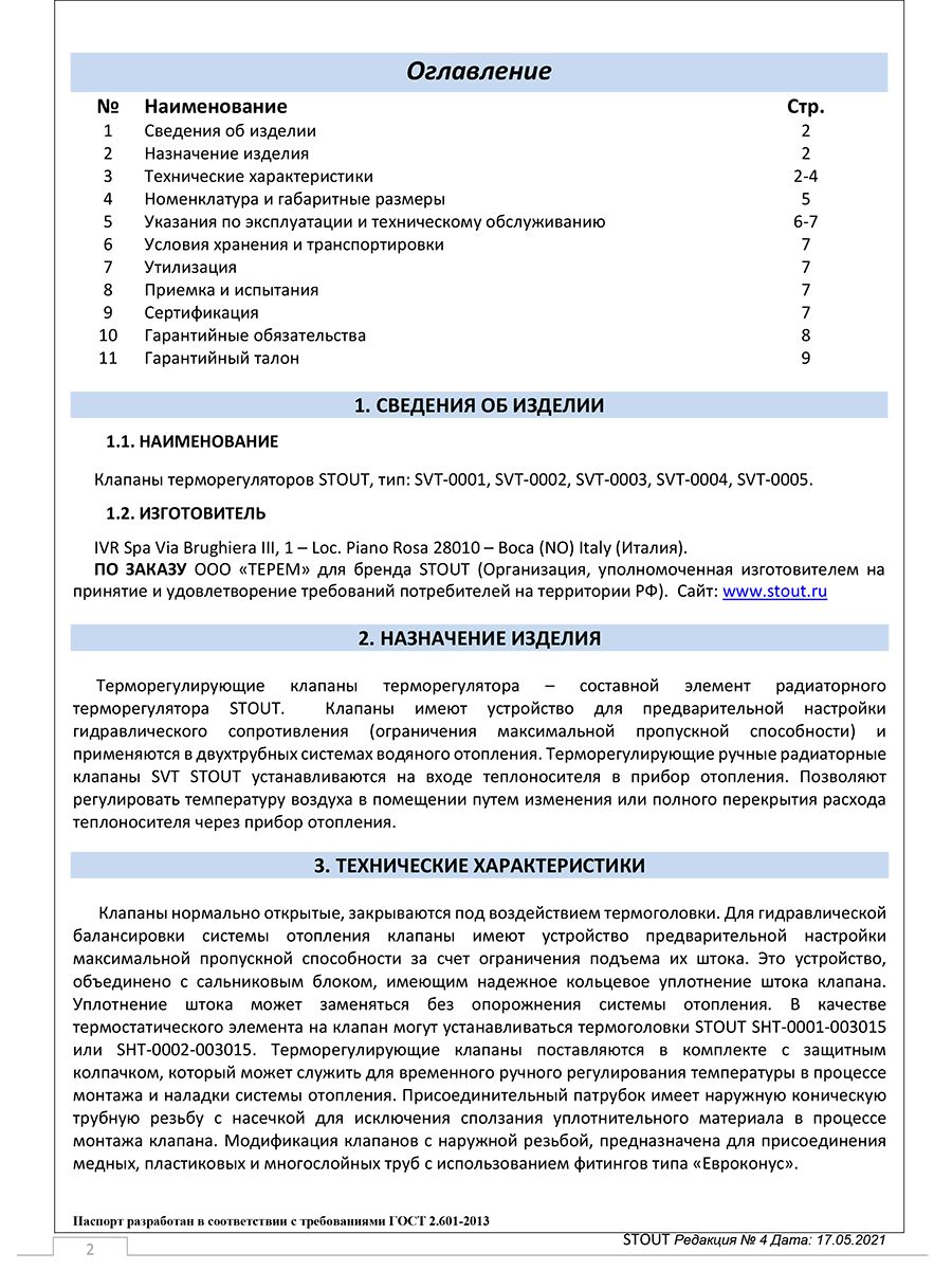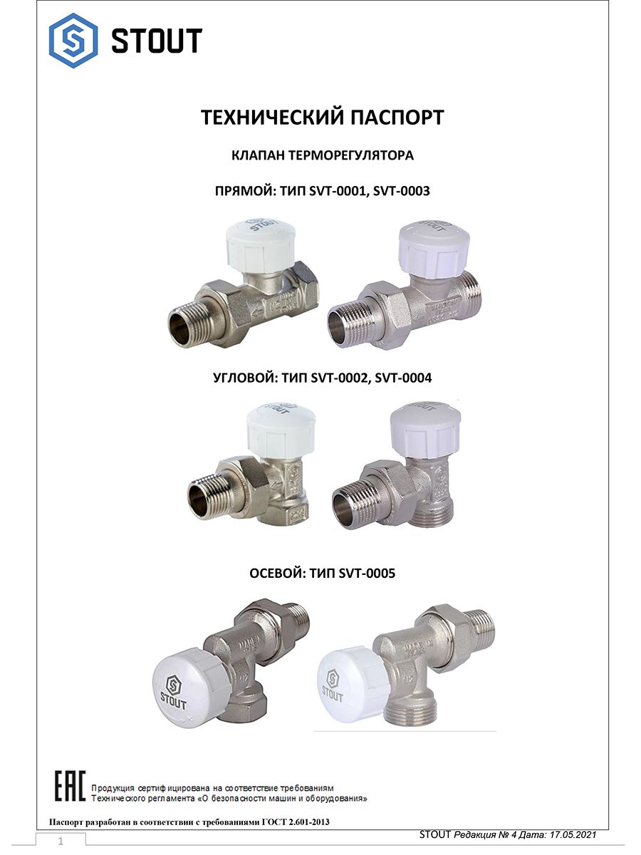 Термостатические клапаны Stout серии SVT имеют устройство для предварительной настройки гидравлического сопротивления (ограничения максимальной пропускной способности) и применяются в двухтрубных системах водяного отопления. Термостатические клапаны устанавливаются на входе теплоносителя в прибор отопления и позволяют регулировать температуру воздуха в помещении путем изменения или полного перекрытия расхода теплоносителя через прибор отопления.