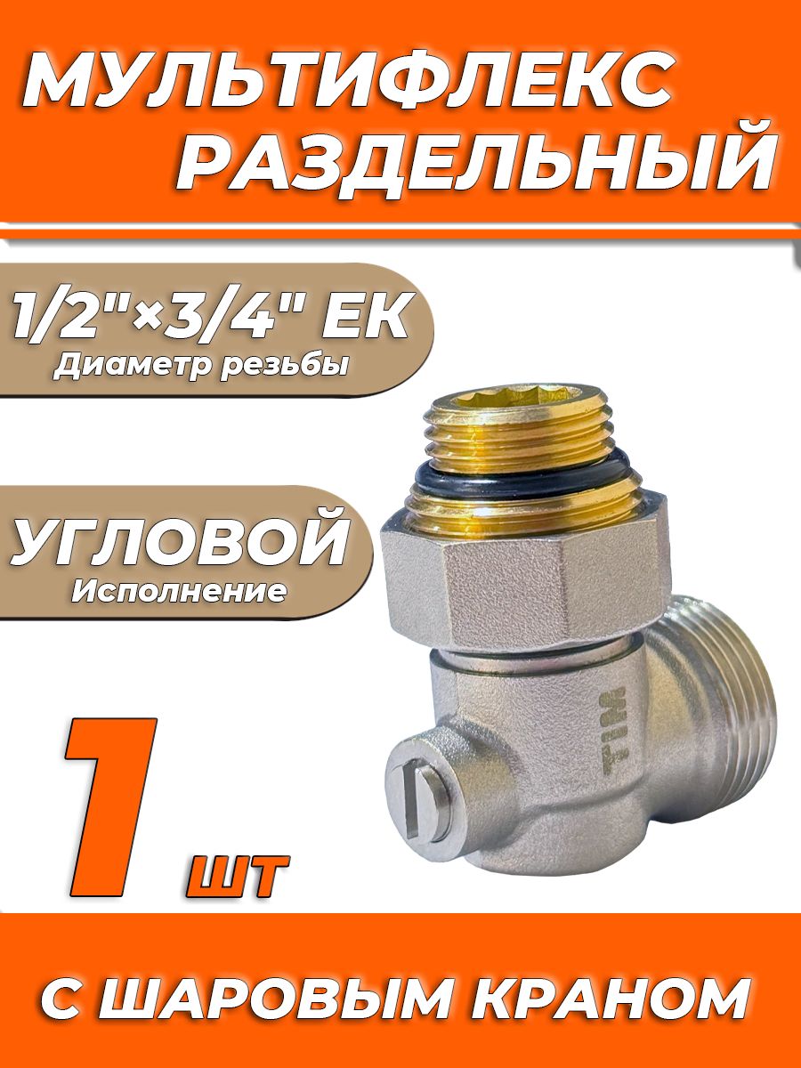 Угловой узел нижнего подключения раздельный 3/4" (мультифлекс) под отвертку TIM ME321AC.