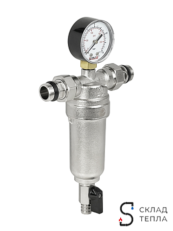 Фильтр промывной с манометром VALFEX - 3/4" (никелированный) VF.381.N.034