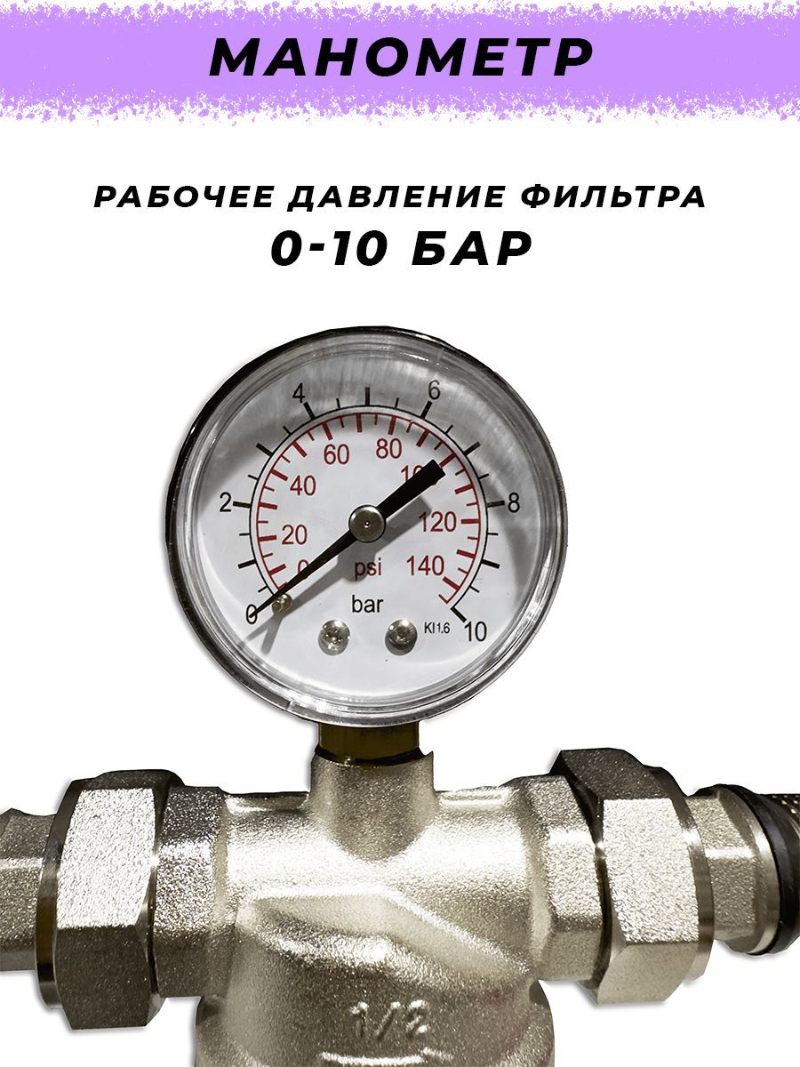 Фильтр промывной с манометром Zeissler - 1/2" ZRF.301.000104N