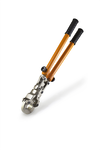 Усилие обжатия зависит от длины телескопических рукояток и регулируется также механизмом пресс-головки, которая, кроме того, может поворачиваться относительно рукояток на 360°.