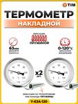 Биметаллический термометр TIM Y-63A-120 является накладным и имеет пружину для крепления. Диаметр корпуса 63 мм. Предназначен для измерения температуры до 120оС.
