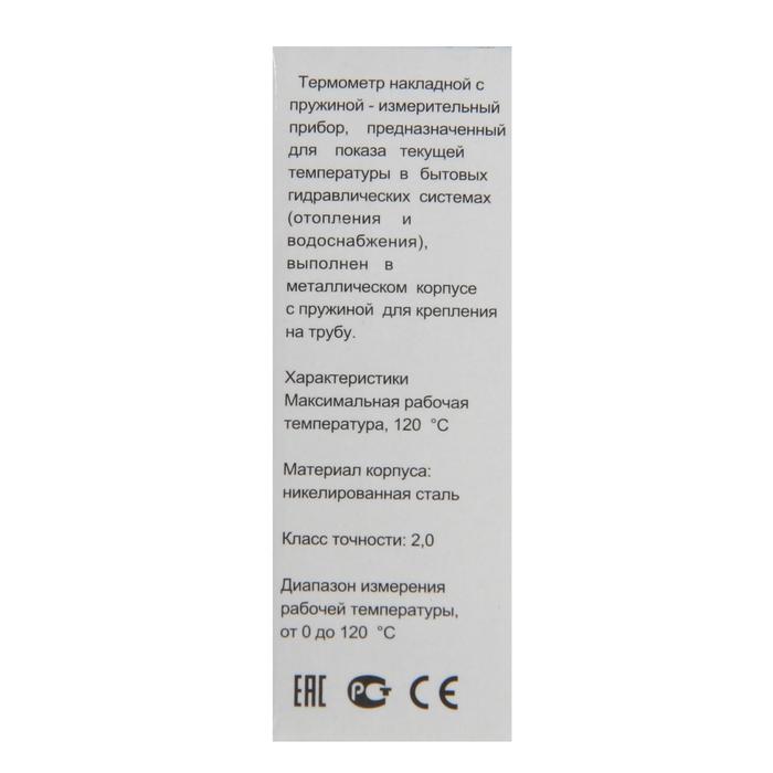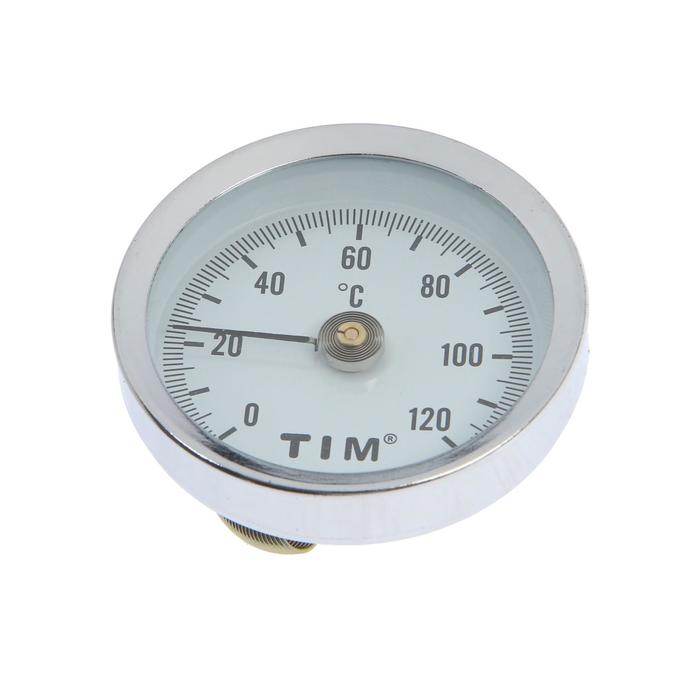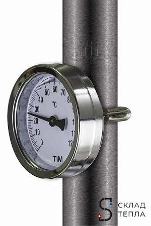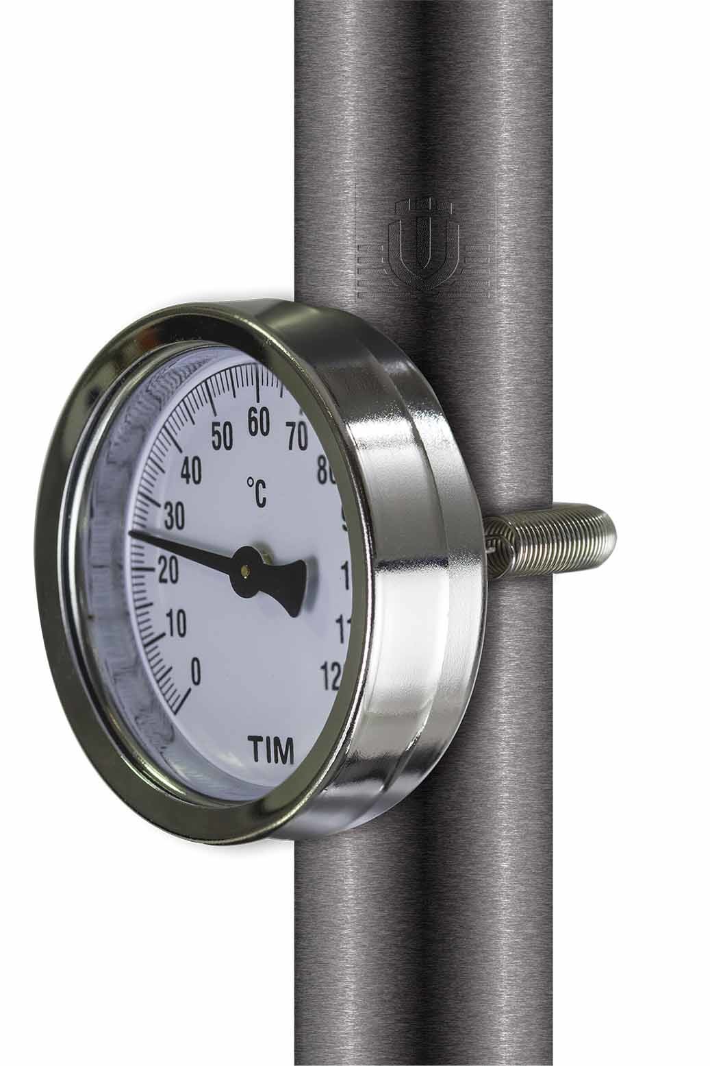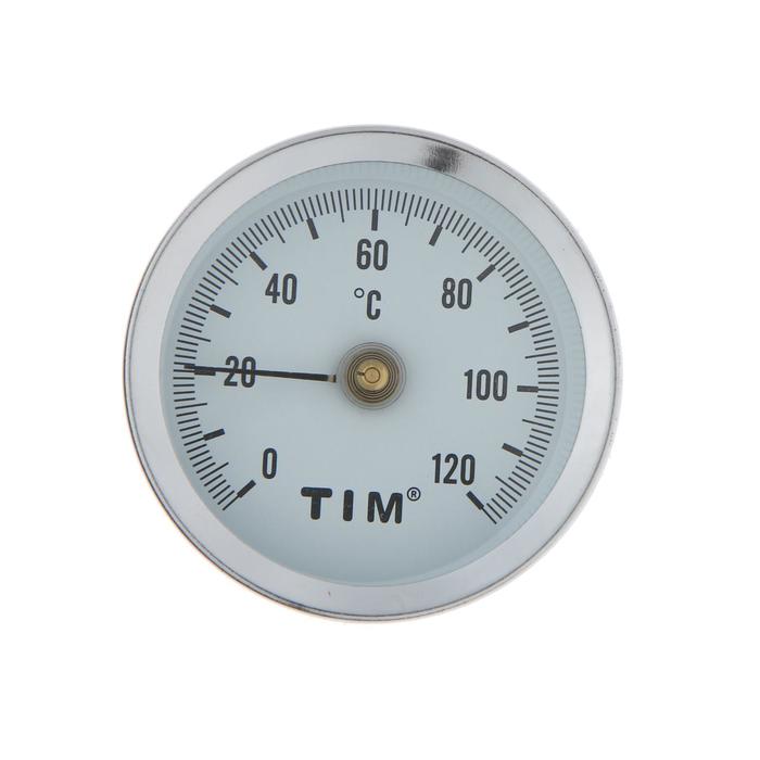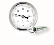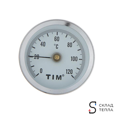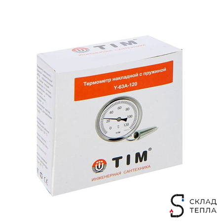Биметаллический термометр TIM Y-63A-120 является накладным и имеет пружину для крепления. Диаметр корпуса 63 мм. Предназначен для измерения температуры до 120оС.