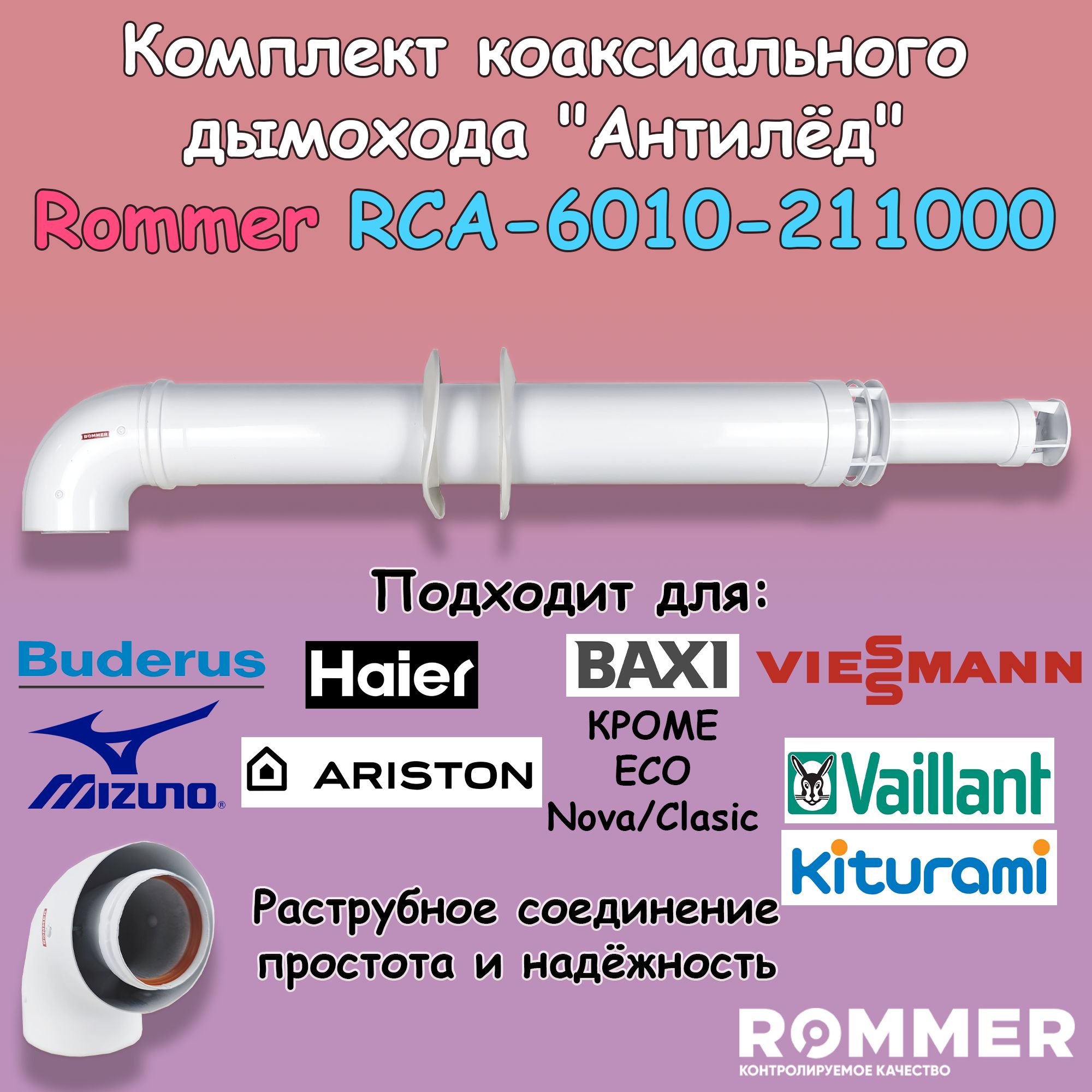 Комплект дымохода Rommer АНТИЛЕД 60/100 - 1000мм (Baxi (кроме ECO Nova/Classic), Viessmann) RCA-6010-211000