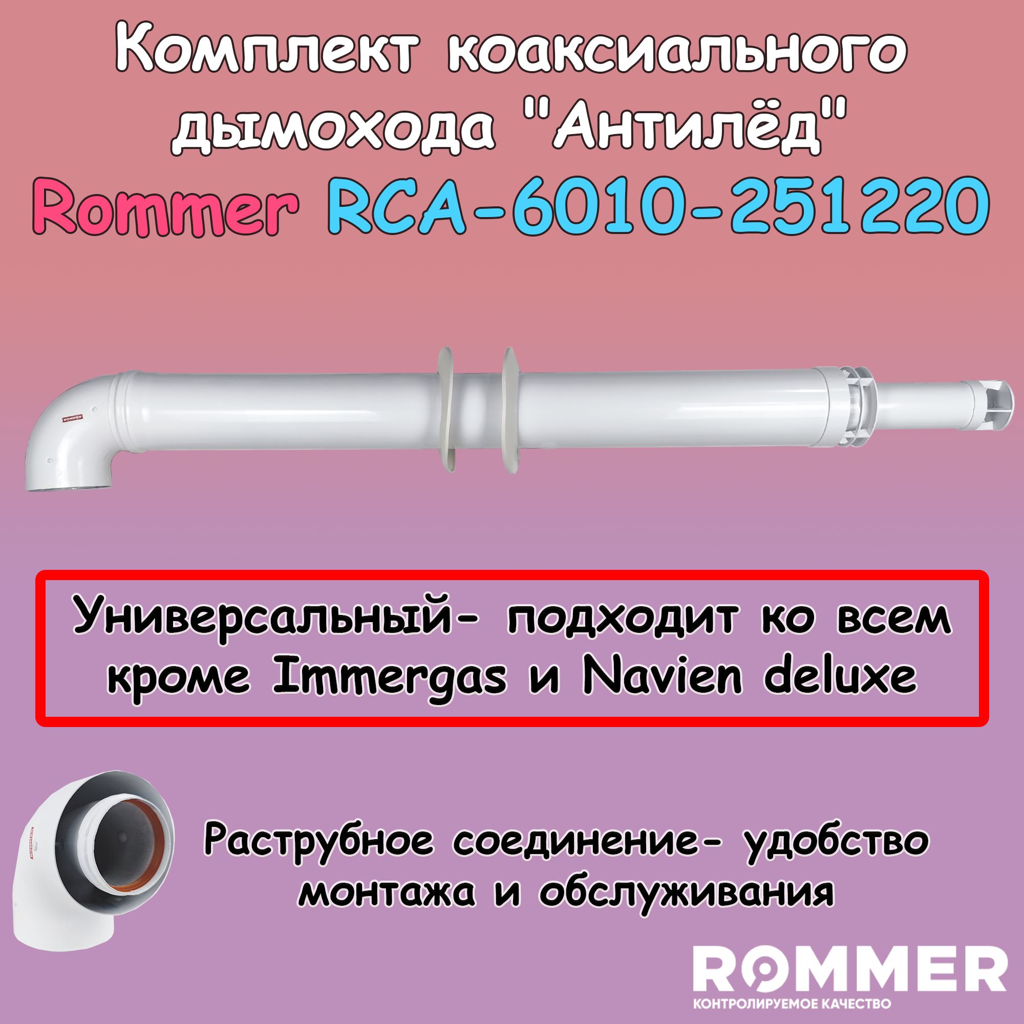 Комплект дымохода Rommer АНТИЛЕД УНИВЕРСАЛЬНЫЙ 60/100 - 1220мм (кроме Immergas и Navien Deluxe) RCA-6010-251220