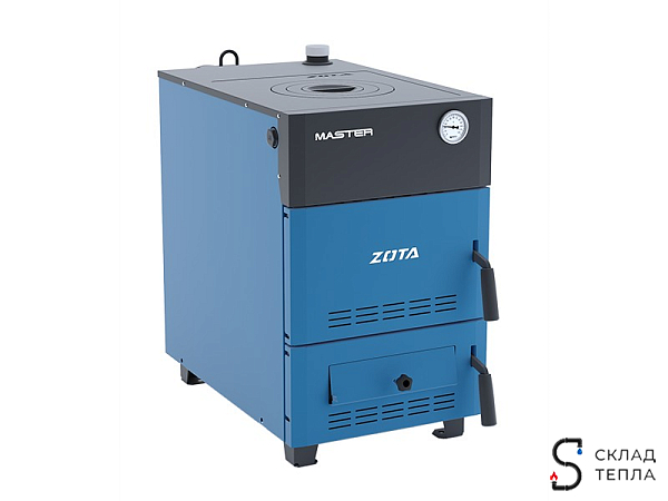 Модели «Master» мощности 12, 18, 25, 32 кВт оборудованы чугунной плитой со съемными поверхностями для более удобной загрузки угля и подогрева пищи;