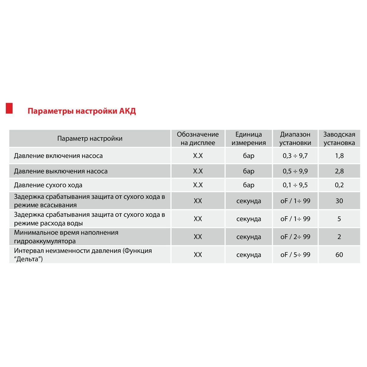 – включает и выключает насос при достижении соответствующих порогов давления, настраиваемых индивидуально;