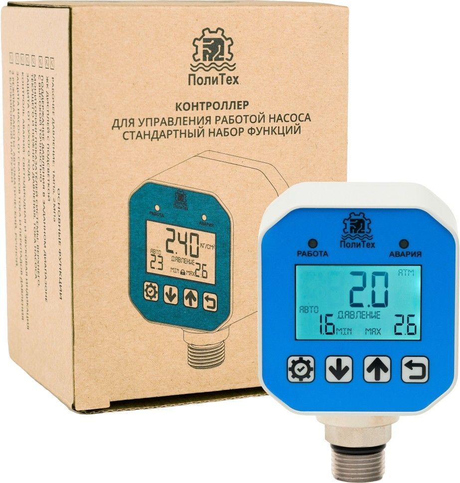 Микропроцессорный контроллер для управления работой насоса «ПолиТех» серии КД-М с плавным пуском в базовой комплектации соединяет в себе функциональные возможности сразу нескольких устройств автоматики для насоса: реле сухого хода для насоса и защиты от работы на перекрытый трубопровод, манометра и других.