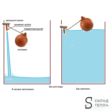 Используется в емкостях, применяемых для создания запаса воды. Предназначен для автоматического прекращения подачи воды после заполнения емкости до заданного уровня.