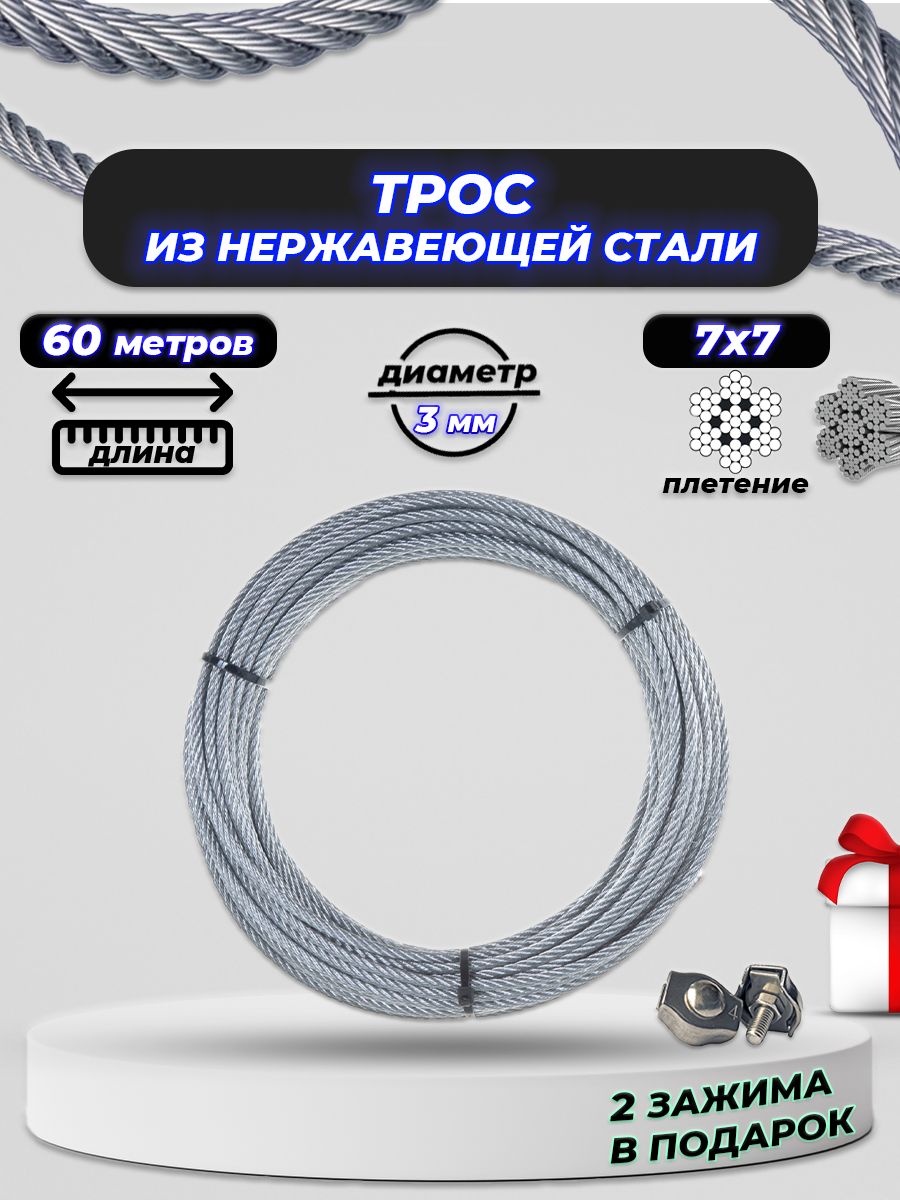 Трос нержавеющий средней жесткости А2 7х7, Ø 3 мм выпускается строго согласно стандартам качества, а именно: