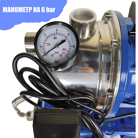 Насосная станция представляет поверхностный насос, соединенный гибкой подводкой с гидроаккумулятором и управляющим насосом реле давления. Поверхностный насос осуществляет забор воды из открытого источника и подачу её под давлением в гидроаккумулятор. После выключения насоса, водоснабжение потребителей осуществляется за счет воды, запасенной под давлением в гидроаккумуляторе.