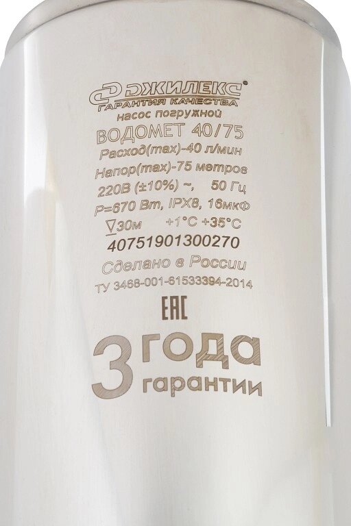 Скважинный насос Джилекс Водомет ПРОФ 40/75 имеет производительность 2,4 м3 и напор 75 метров, диаметр корпуса составляет 98 мм. Используется специально для глубоких скважин с малым дебетом.