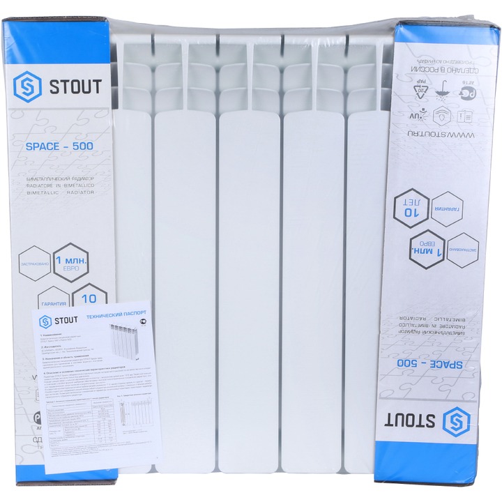 Биметаллические радиаторы Stout Space сделаны в России. Классическая усиленная конструкция со стальным вертикальными коллекторами могут использоваться в системах с центральным отоплением с давлением до 25 бар и температурой теплоносителя до 135 градусов.