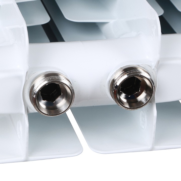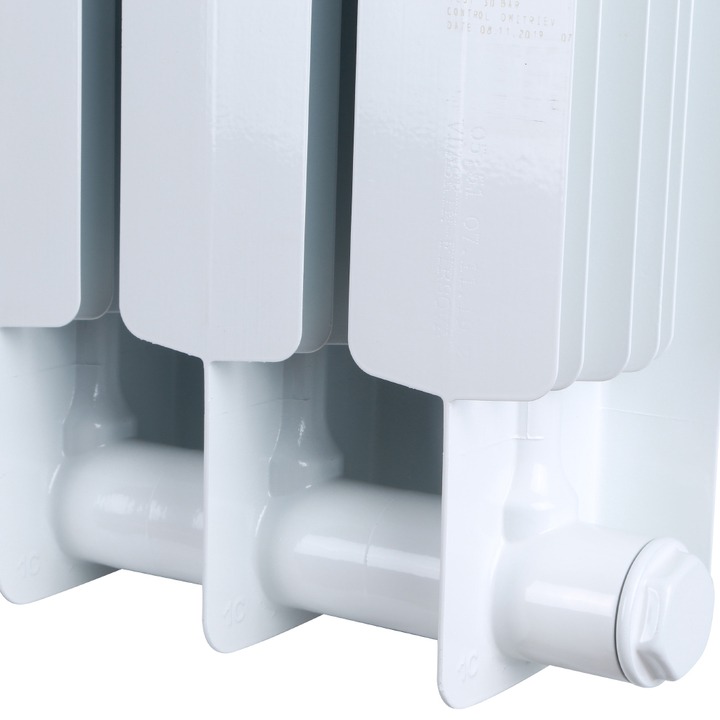 Радиаторы поставляются в комплектации от 4 до 14 секций, в том числе нечетные исполнения, межосевое расстояние 500 мм, имеют высокую теплоотдачу 171 ват на секции, глубина секции 90 мм.