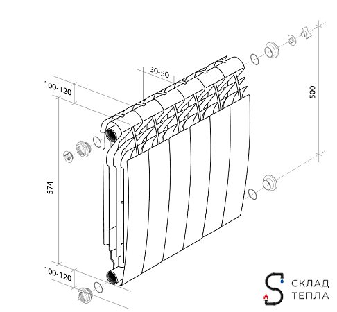 Металлическая шильда с изображением логотипа производителя на радиаторе в правом верхнем углу и нанесенная на заводе маркировка на ребре всех секции радиатора хорошо оберегает покупателя от подделок