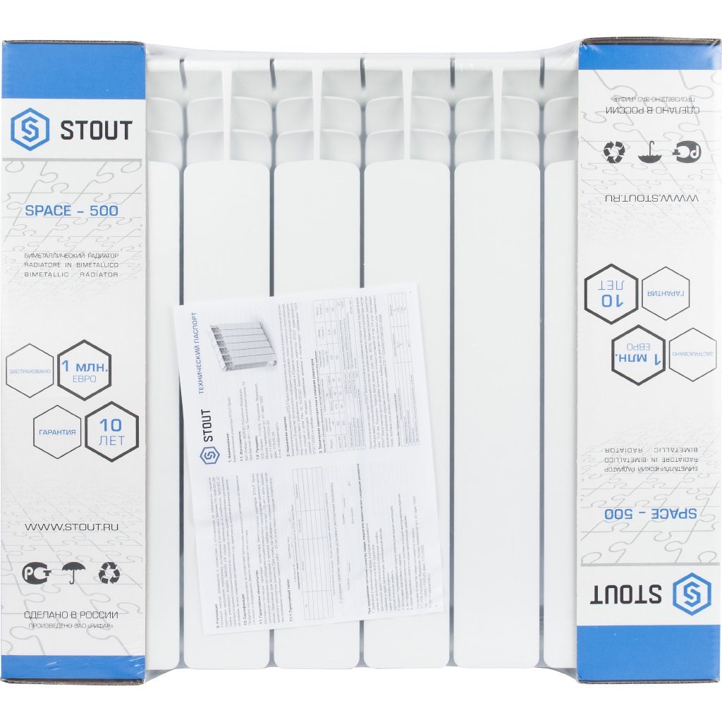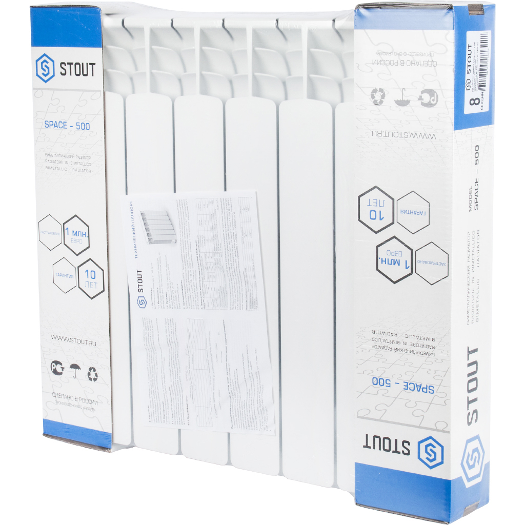 Биметаллические радиаторы Stout Space сделаны в России. Классическая усиленная конструкция со стальным вертикальными коллекторами могут использоваться в системах с центральным отоплением с давлением до 25 бар и температурой теплоносителя до 135 градусов.