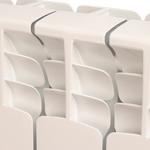 Уникальная геометрия меж секционных соединений, используется силиконовая прокладка которая размещена таким способом что с наружи ее даже не видно, такая технология соединения позволяет обеспечить гарантию на радиаторы 10 лет. У радиаторов на заводе 6 стадии проверки, на крайней секции с задней стороны должен быть штрих код означающий что радиатор прошел их все. Радиаторы сертифицированы по ГОСТ 31311-2005.