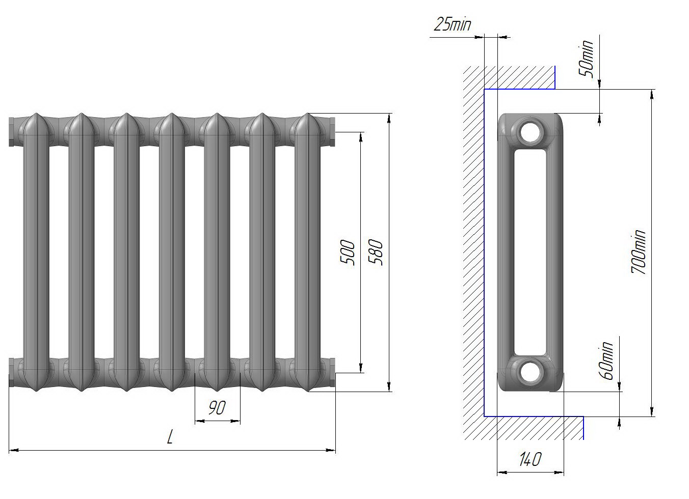 Чугунные радиаторы МС-500 являются самыми популярными приборами для отопления среди потребителей. На сегодняшний день чугунные приборы отопления обладают повышенными техническими и эксплуатационными характеристиками. Данный вид изделия изготавливают из чугуна высокого качества, используя метод литья. Сплав заливают в специально отлитые формы, полученную конструкцию разделяют на секции, которые скрепляют друг с другом специальными крепежами – ниппелями. Чугунные радиаторы используют для отопления в любых помещениях, частных домах , квартирах и в качестве автономного отопления. Для таких приборов подходит любой вид теплоносителя. Благодаря тому, что стенки чугунных радиаторов имеют большую толщину, это позволяет использовать такие приборы достаточно длительный срок (более 50 лет).