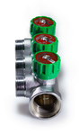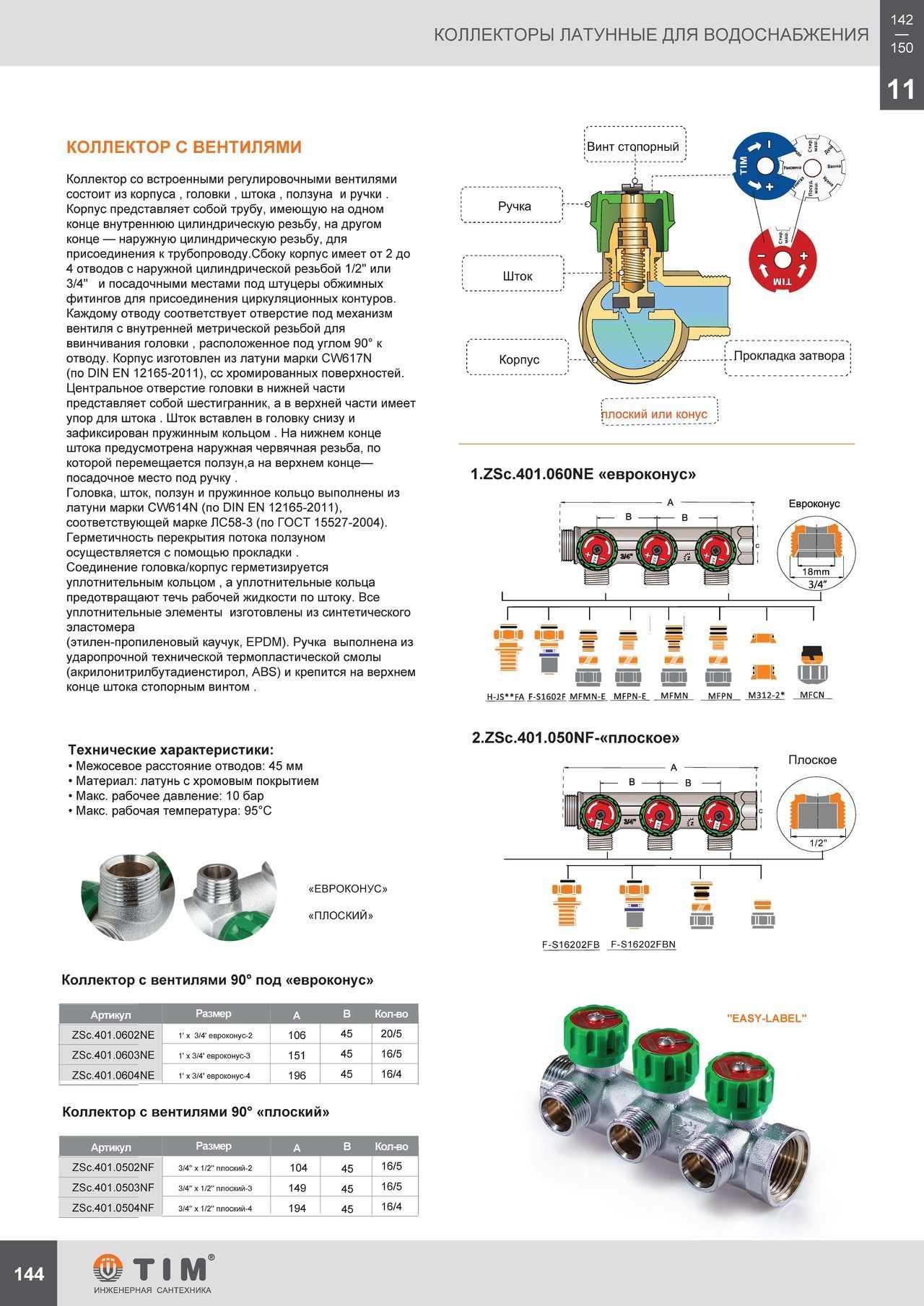 Коллектор со встроенными регулировочными вентилями состоит из: корпуса, головки, штока, ползуна и ручки. Корпус представляет собой трубу, имеющую на одном конце внутреннюю цилиндрическую резьбу, на другом наружн7ую цилиндрическую резьбу, для присоединения к трубопроводу. Сбоку корпус имеет от 2 до 4 отводов. Каждому отводу соответствует отверстие под механизм вентиля.