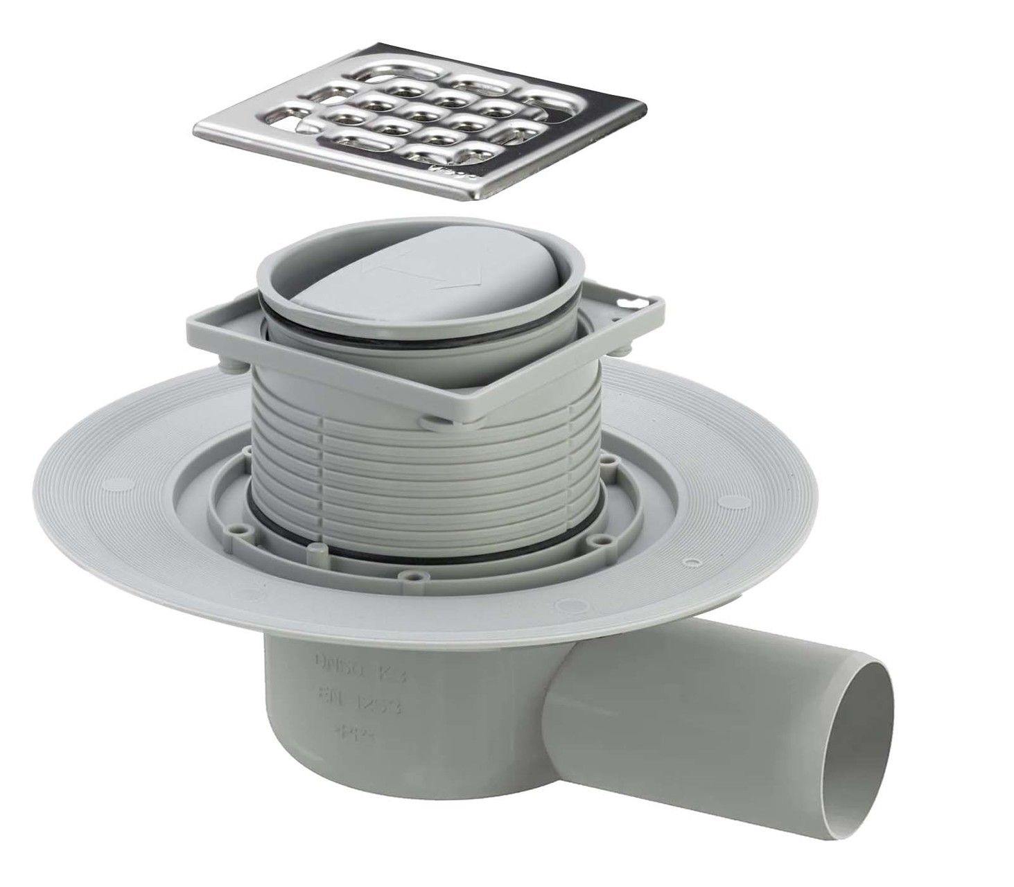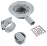 Является универсальным трапом, т.к. имеет сухой затвор. Имеет монтажный фланец и боковой горизонтальный отвод для подсоединения канализационной трубы диаметром 50 мм.