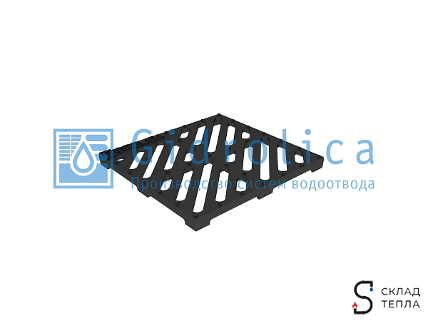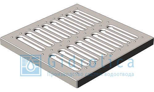 Выполнена из высокопрочного чугуна ВР. Имеет продольное и поперечное ребра жесткости, расположенные с нижней стороны решетки. Толщина ребер жесткости 21 мм. Расположение щелей косое, под углом 450, по всей поверхности изделия.