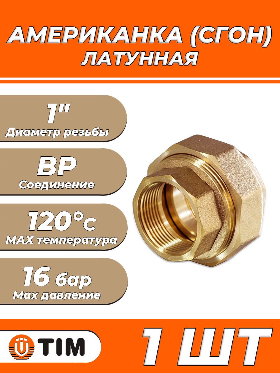 Соединение быстроразъемное (американка) латунное TIM - 1" (ВР/ВР, 1шт) HKS044
