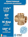 Крестовина латунная резьбовая равнопроходная STOUT (ВР) - 1 1/4" SFT-0030-000114