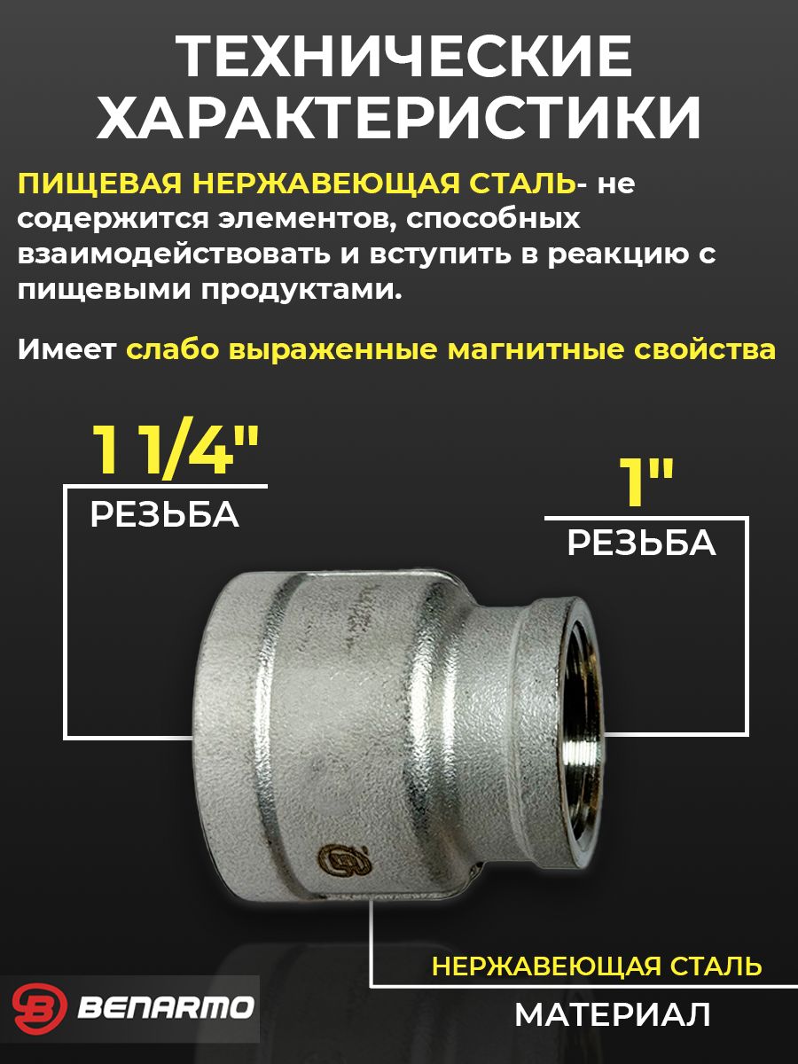 Подробную техническую информацию к товарной позиции Муфта резьбовая переходная Benarmo - 1 1/4" х 1" (нержавеющая сталь), от производителя Benarmo Вы можете получить у менеджеров интернет-магазина СкладТепла по телефону +7(495) 120-41-51 или электронной почте mail@sklad-tepla.ru. Цена на Муфта резьбовая переходная Benarmo - 1 1/4" х 1" (нержавеющая сталь) указана за единицу и составляет 807руб.