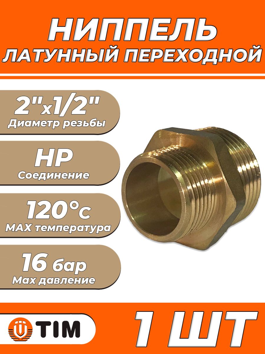 Ниппель латунный резьбовой переходной TIM - 2" x 1/2" (1шт)