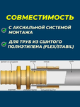 Латунные аксиальные тройники надвижные предназначены для создания неразъемных соединений труб из сшитого полиэтилена PEX и полиэтилена повышенной термостойкости PE-RT размерной серии S3,2 (SDR 7,4) по ГОСТ 32415-2013. Применяются в системах питьевого и хозяйственного водопровода, горячего водоснабжения, отопления, сжатого воздуха, а также на технологических трубопроводах, транспортирующих жидкости, не агрессивные к материалам труб и соединителей.