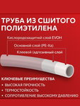 Внутренний основной «несущий» слой трубы, контактирующий с перемещаемой средой, выполнен из сшитого полиэтилена PE-Xa. Наружный барьерный (кислородозащитный) слой представляет собой тонкую оболочку из поливинилэтилена EVOH, практически полностью предотвращающую диффузию кислорода из окружающего воздуха в перемещаемую по трубопроводу среду. Для обеспечения надежного контакта наружного и барьерного слоев между ними нанесен клеевой (адгезивный) слой.