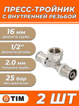 Пресс-тройник с внутренней резьбой TIM - 16 x 1/2" (для металлопластиковых труб) 2шт F-T1602FN-2