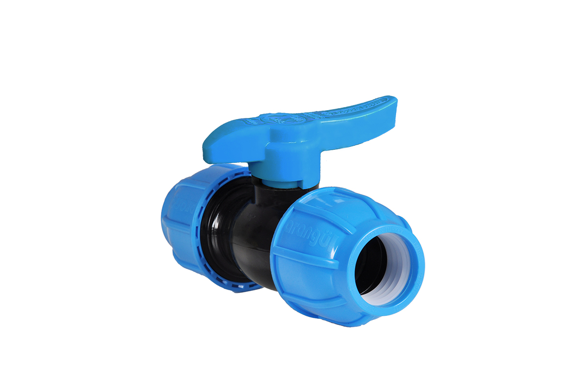Кран компрессионный шаровой (цанга-цанга) разборной Arangul изготовлен из сополимера полипропилена и способен выдерживать до 12.5 Бар при температуре от -10 C до +25 С.