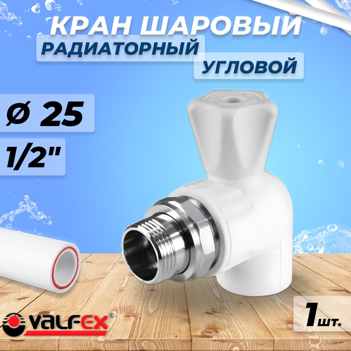 Кран шаровой для радиатора угловой VALFEX - 25 x 1/2" (Пайка/НР, для полипропиленовых труб, белый) 10148125