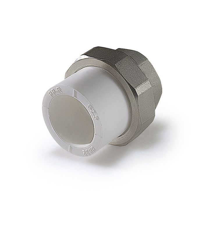 Для соединения полипропиленовых трубопроводов с резьбовыми элементами системы выпускаются комбинированные фитинги с латунными никелированными закладными деталями.