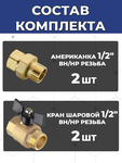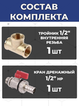 Комплект подключения накопительного водонагревателя (бойлера) представляет собой набор арматуры и соединительных элементов для правильного соединение водонагревателя с системой водоснабжения. Комплект включает в себя дренажный кран для слива воды во врем обслуживания водонагревателя и на время прекращения эксплуатации. Данный комплект универсальный и подходит ко всем накопительным водонагревателям с присоединительными патрубками 1/2" наружная резьба.