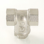 (VT.385.N) Фильтр механической очистки прямой малогабаритный. Может устанавливаться в горизонтальном и вертикальном (при направлении потока сверху вниз) положении. Корпус и пробка фильтра выполнены из латуни марки CW617N (европейский стандарт EN 12165), никелированы. Между ними имеется уплотнительное кольцо из EPDM. Пробка оснащена отверстием для пломбировки. Размер ячеек сетки фильтрующего элемента из нержавеющей стали – 300 мкм, максимальное рабочее давление – 16 бар. Максимальная рабочая температура фильтруемой среды – 110 °C. Пробка фильтра имеет резьбу 1/2", что позволяет устанавливать вместо нее дренажный или водоразборный кран, гибкую подводку и т.п. Резьба присоединения – внутренняя.