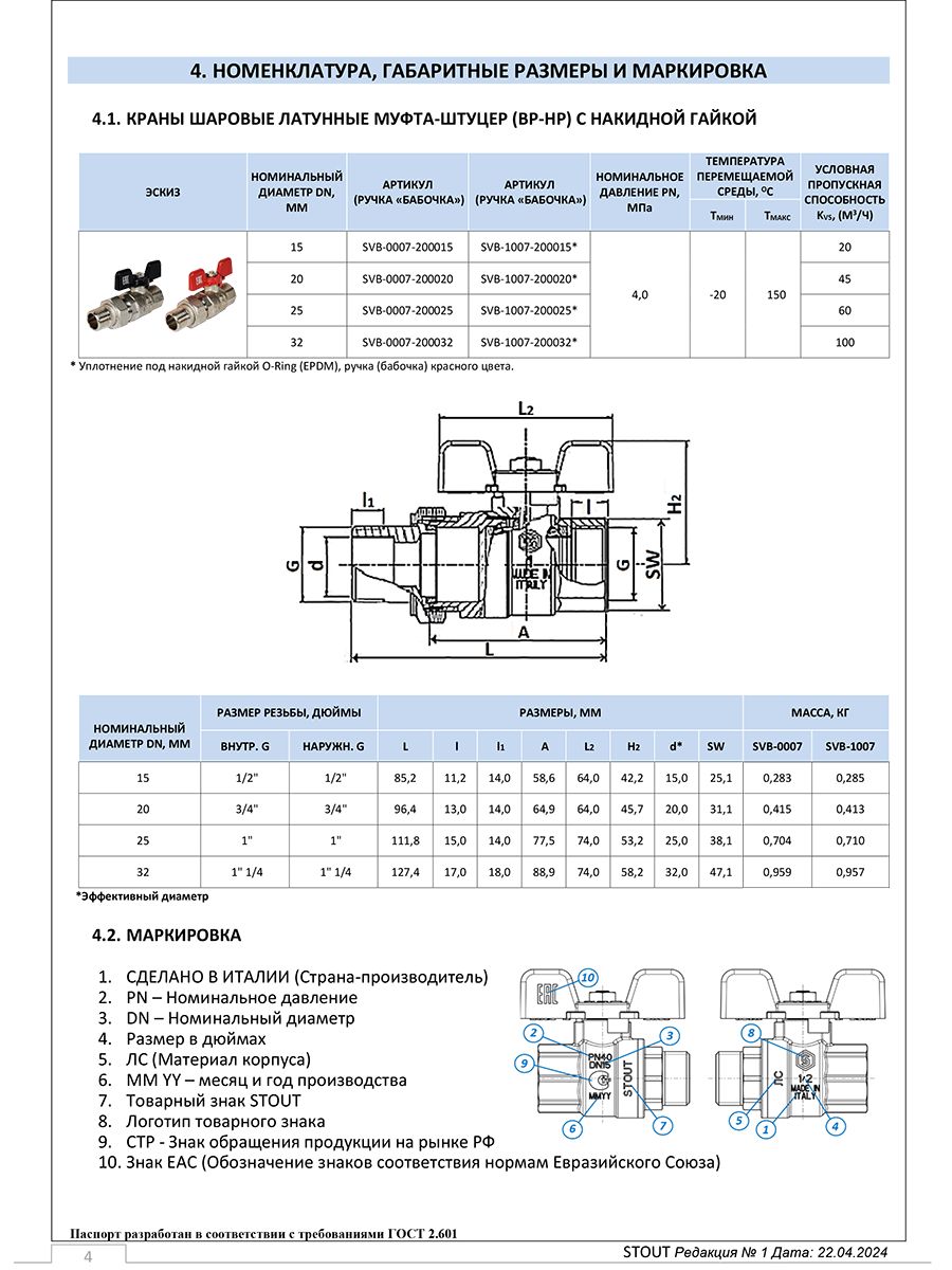 Подробную техническую информацию к товарной позиции Кран шаровой полнопроходной STOUT - 1/2" (ВР/НГ, PN40, Tmax 150°С, ручка-бабочка черная), от производителя STOUT Вы можете получить у менеджеров интернет-магазина СкладТепла по телефону +7(495) 120-41-51 или электронной почте mail@sklad-tepla.ru. Цена на Кран шаровой полнопроходной STOUT - 1/2" (ВР/НГ, PN40, Tmax 150°С, ручка-бабочка черная) указана за единицу и составляет 1 190руб.